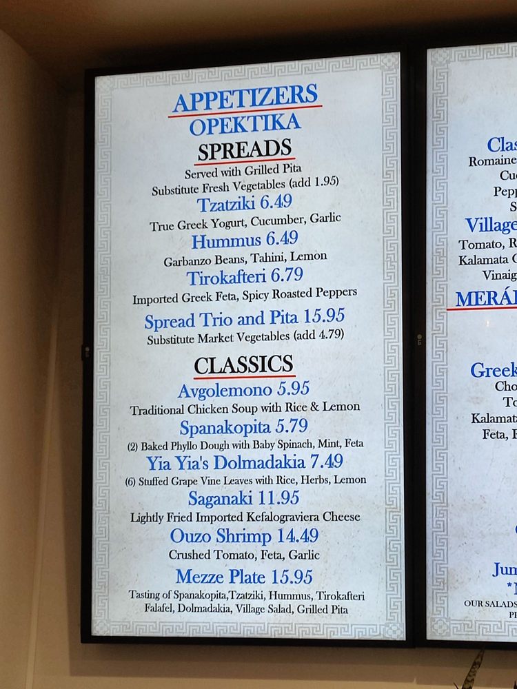 Tasting of Spanakopita, Tzatziki, Hummus, Falafal, Dolmadakia, Village Salad, Pita